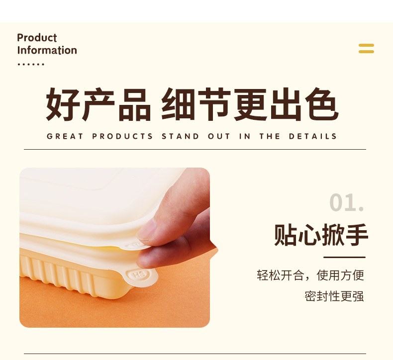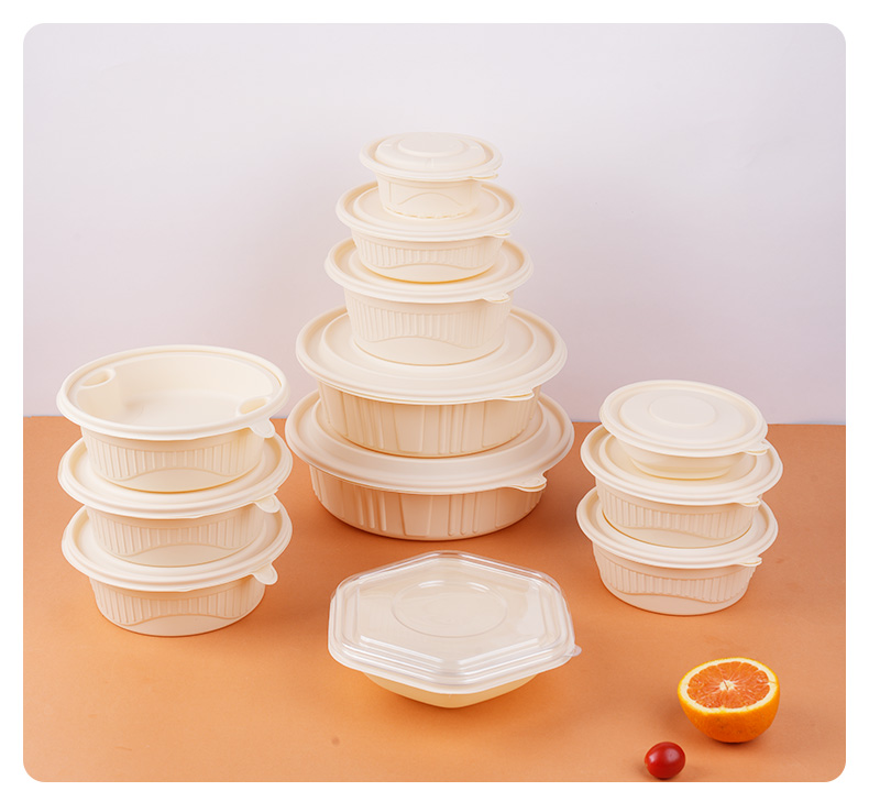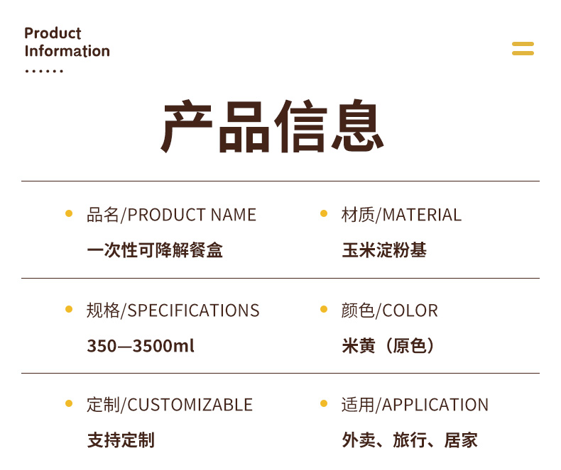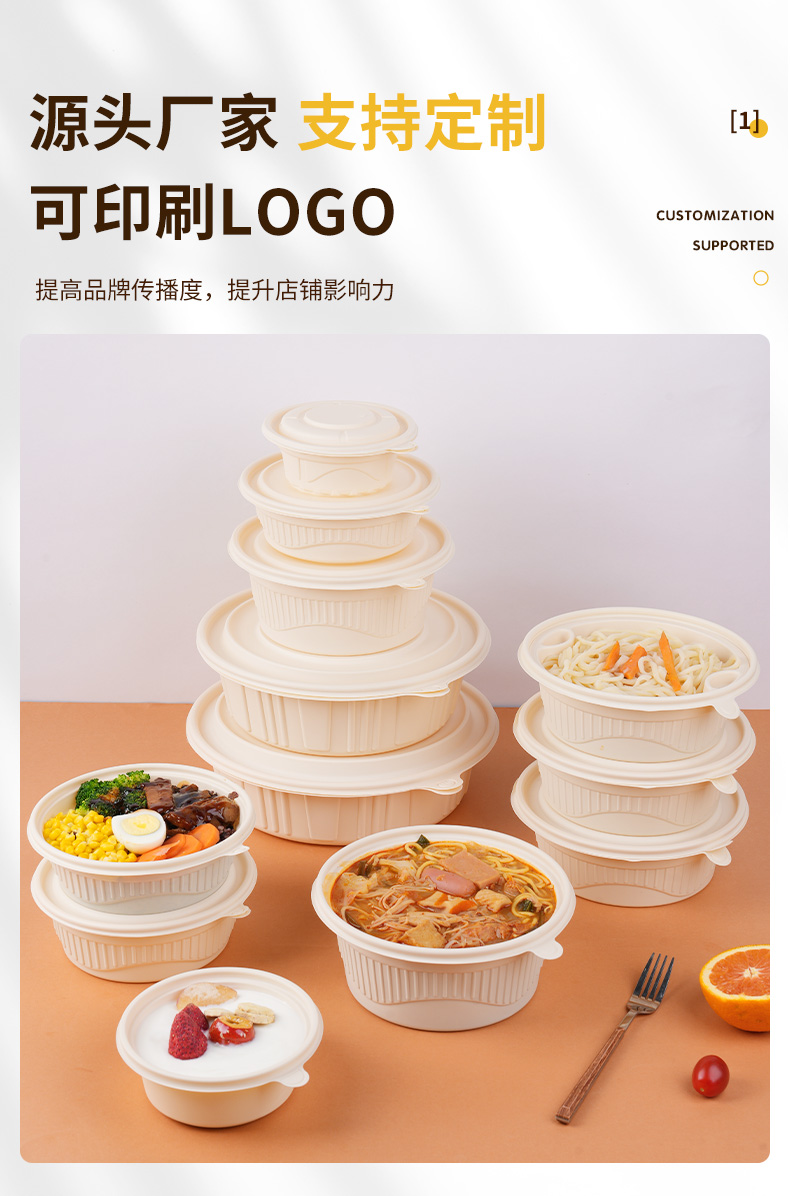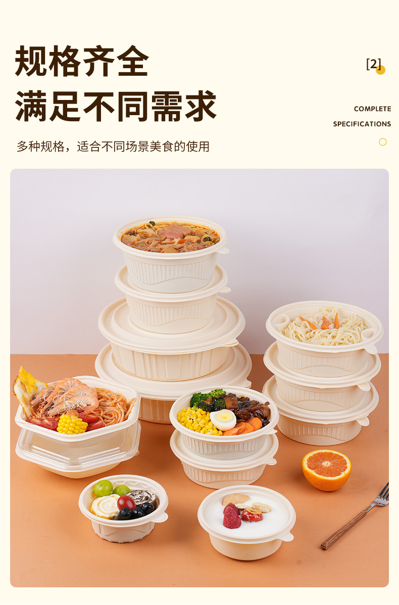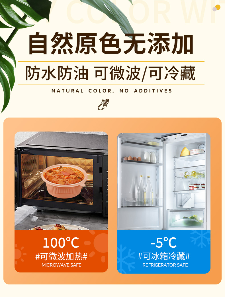 环保可降解玉米淀粉基餐盒,QS认证,可加热可冷藏,密封防漏,加厚耐压。密封防护,配盖严密,外卖配送不易撒,升级加深卡扣,密封更严密。