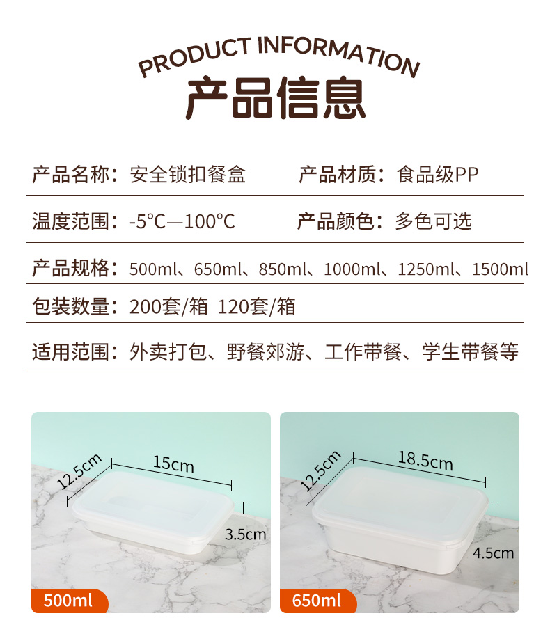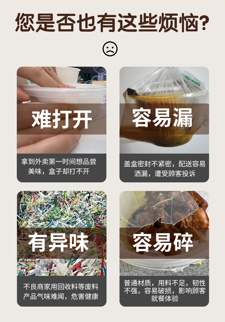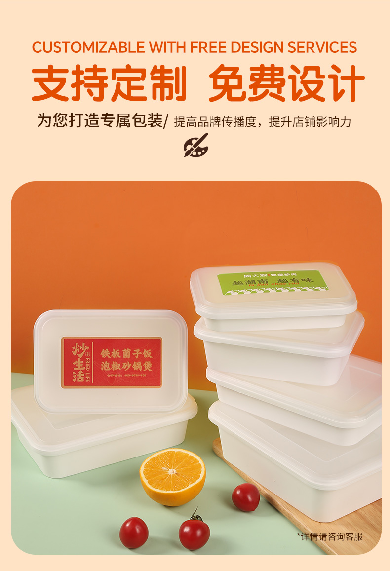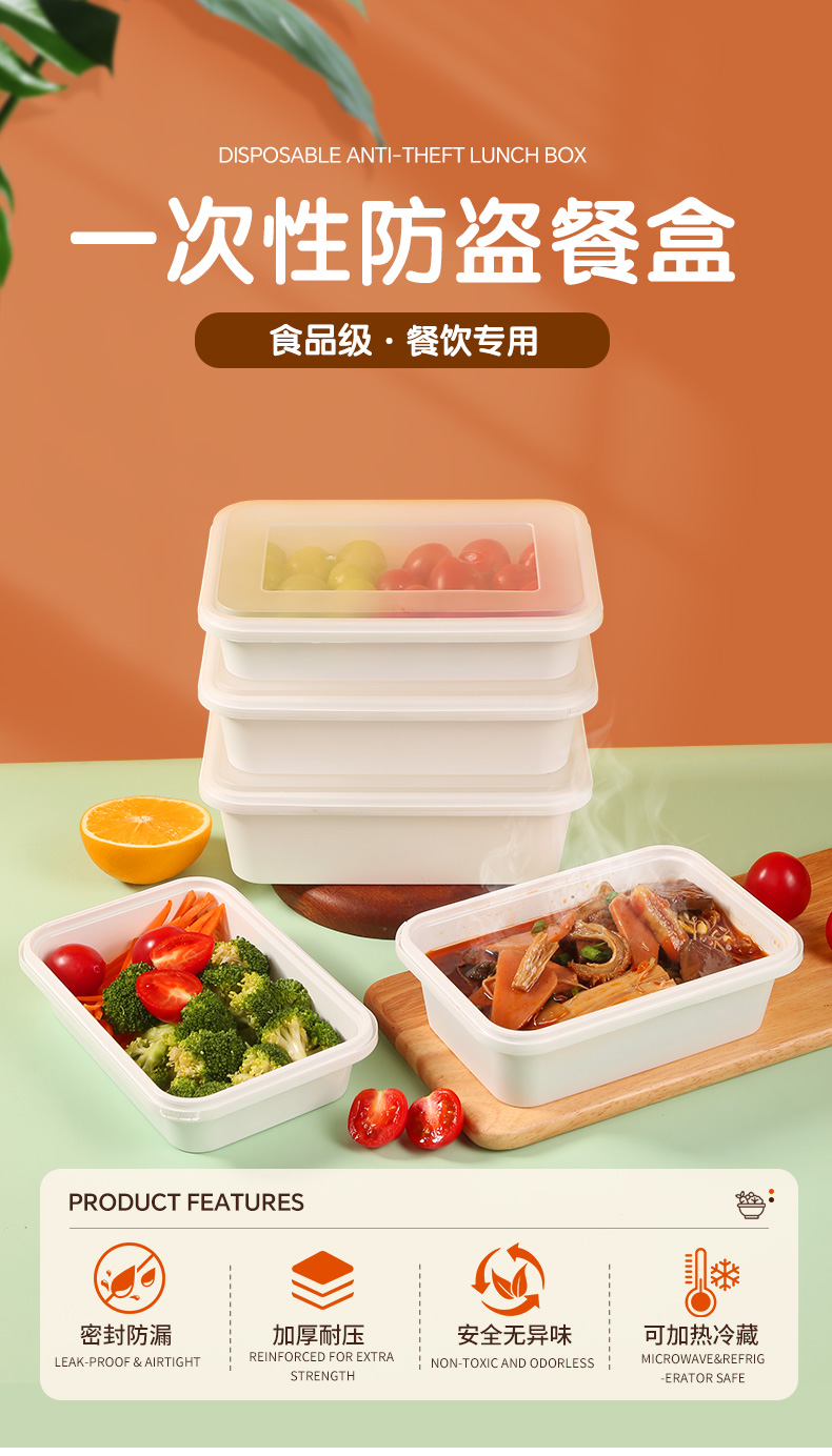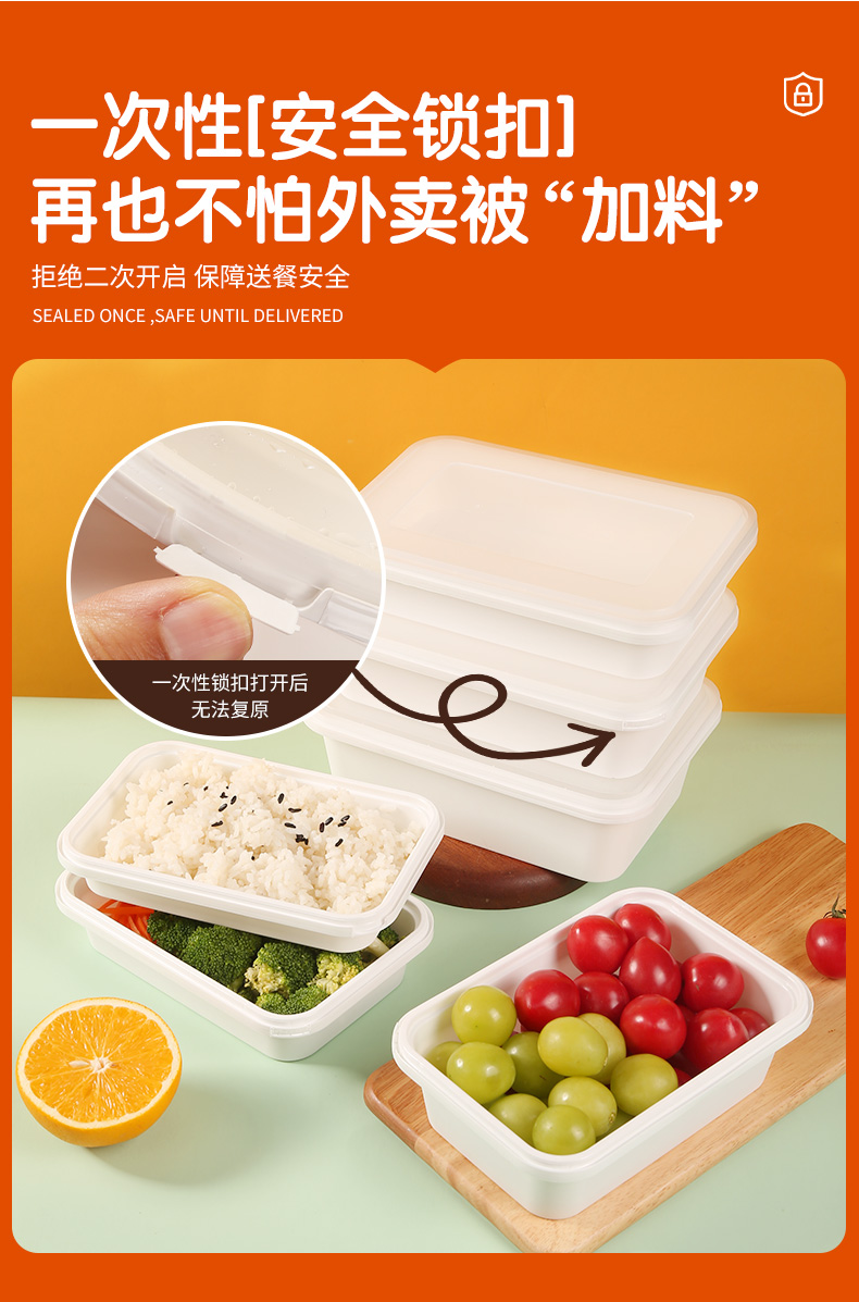 一次性防盗餐盒,食品级餐饮专用。支持定制,免费设计,为您打造专属包装,提高品牌传播度,提升店铺影响力。不漏汤不漏油,外卖配送不用愁,升级加深卡扣,配盖严密。一次性安全锁扣,再也不怕外卖被“加料”,拒绝二次开启,保障送餐安全。